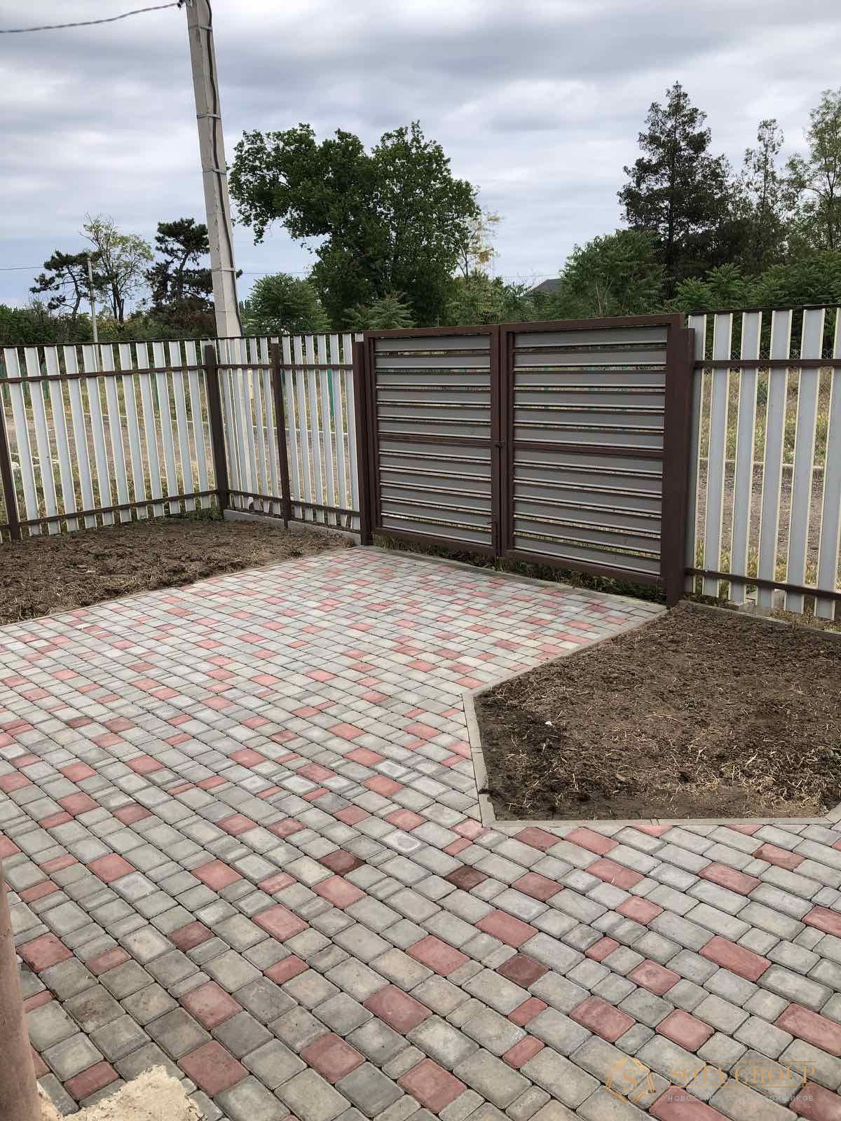 Территория дома полностью огорожена красивым металлическим забором с въездными воротами